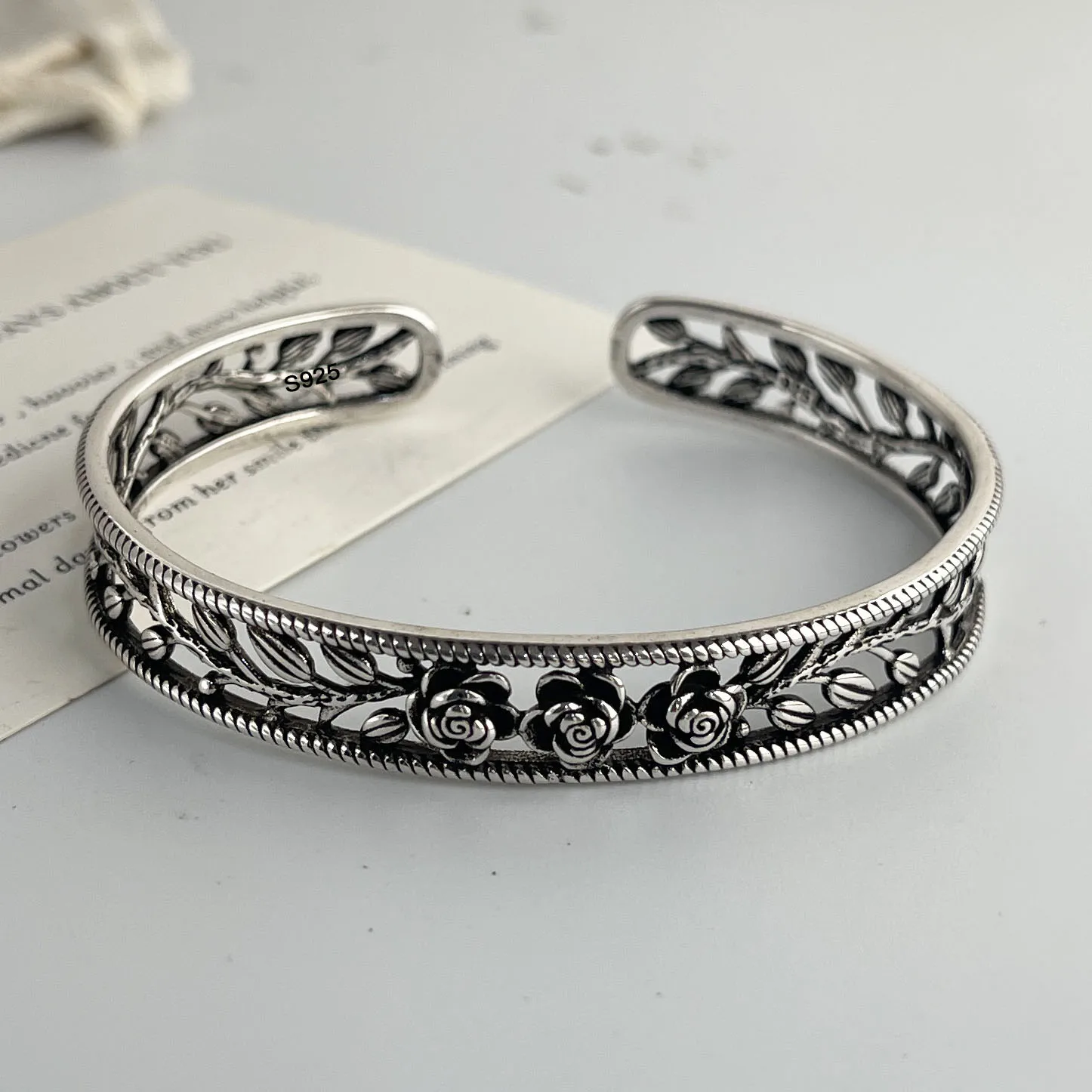 100% Solid 925 Sterling Silver Metal Bracelet for Women Vintage Handmade Simple Retro Flower Chain Bracelet Birthday Gift Party